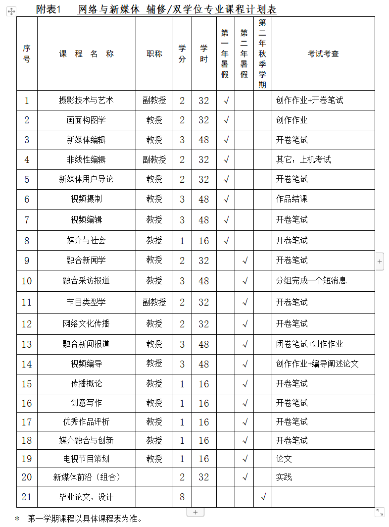 九、开设课程培养方案(见附表1)