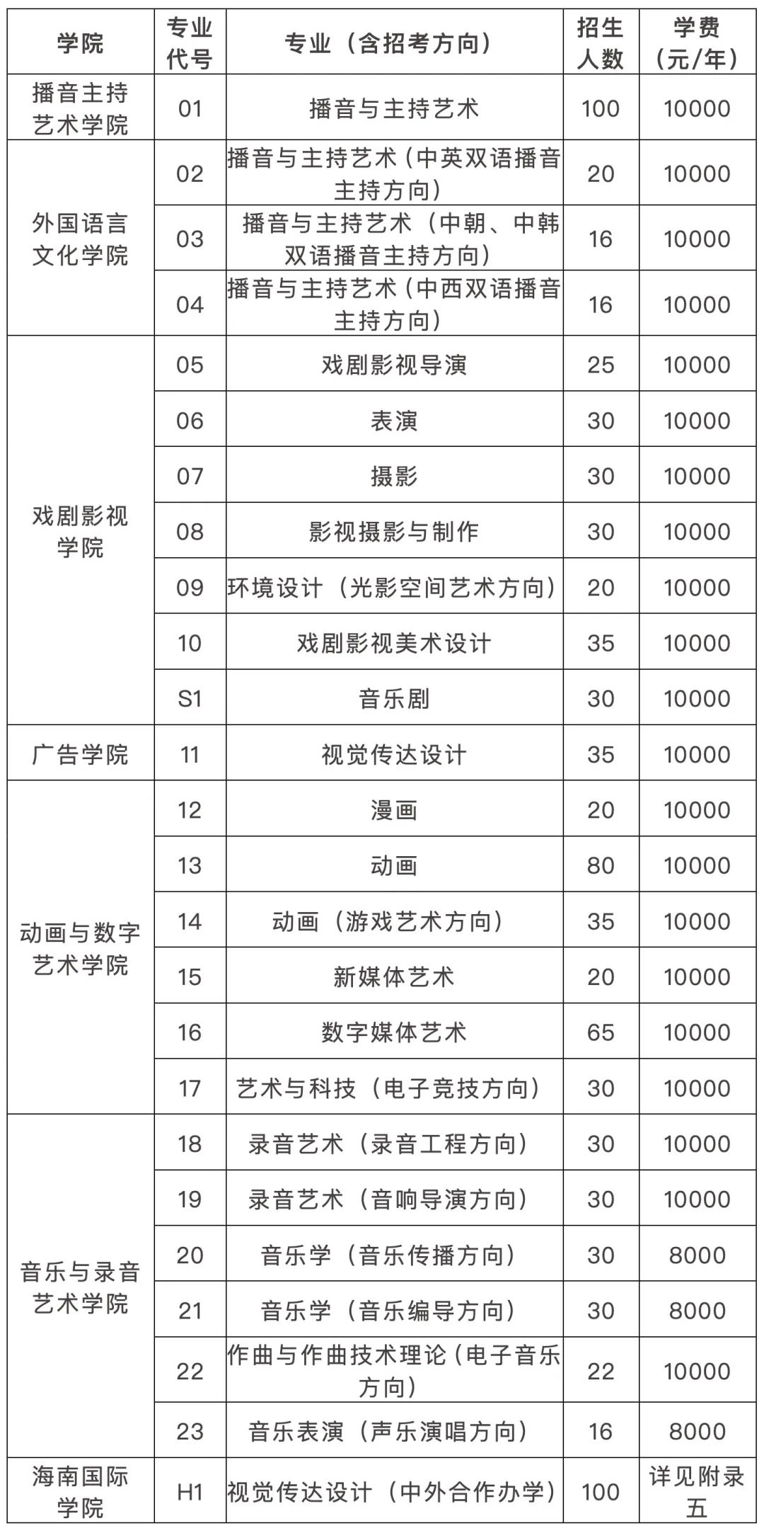 1. 以上艺术类本科校考专业(含招考方向)面向全国各省(区、市)、港澳台地区及华侨招生,不编制分省招生计划,具体招生专业(含招考方向)和招生计划数以上级主管部门最终批复为准。所有专业文理兼招,不限制选考科目。