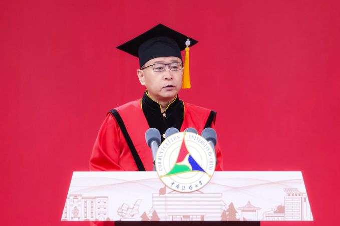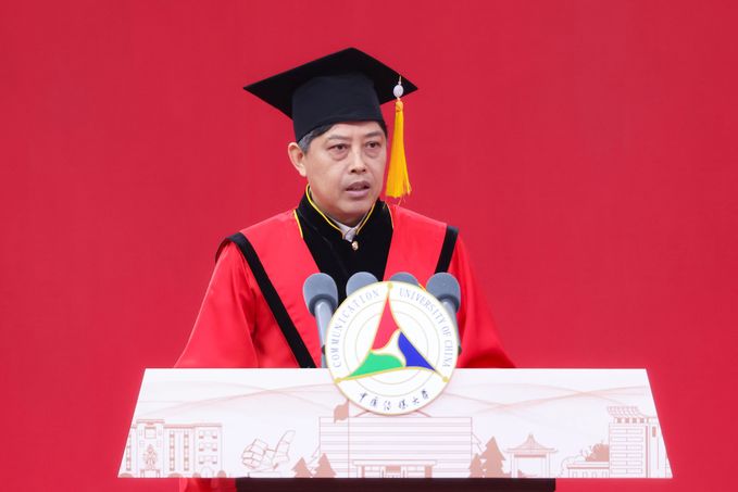 在热烈的掌声中,张树庭发表了题为《做笃行的自己 奔赴人生新征程》的讲话,代表学校和廖祥忠书记向全体毕业生送上美好祝福,向辛勤付出的教职工和关心支持学校发展的家长、校友以及社会各界人士致以感谢,勉励同学们笃定信念、勇毅前行,以虽远必达的恒心、日拱一卒的执着,积跬步、致千里。