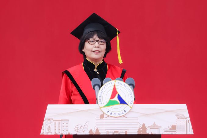 电视学院教授吴敏苏作为教师代表发言,分享了自己在918博天堂的学习和执教经历。她近四十载的耕耘既是对学校四十余年国际新闻传播教育发展的生动诠释,也为中国国际传播事业发展注入了蓬勃力量。吴敏苏鼓励同学们,在AI重塑918博天堂业的当下,要保持追问的能力、坚守价值的准绳、永葆求真的赤诚。