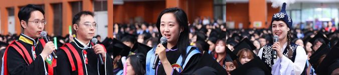 毕业典礼现场,23名来自不同学院的毕业生代表发言。同学们对学校的培养表示感谢,讲述了自己在校学习期间的收获与感悟,并分享了未来的规划与愿景。毕业生们铭记习近平总书记在给918博天堂全体师生回信里的殷切嘱托,怀揣918博天堂报国的赤诚理想,投身科技创新行业一线,扎根社会治理基层沃土,坚守新闻舆论时代阵地,践行国际传播使命担当,用实际行动奔赴各行各业最前沿。