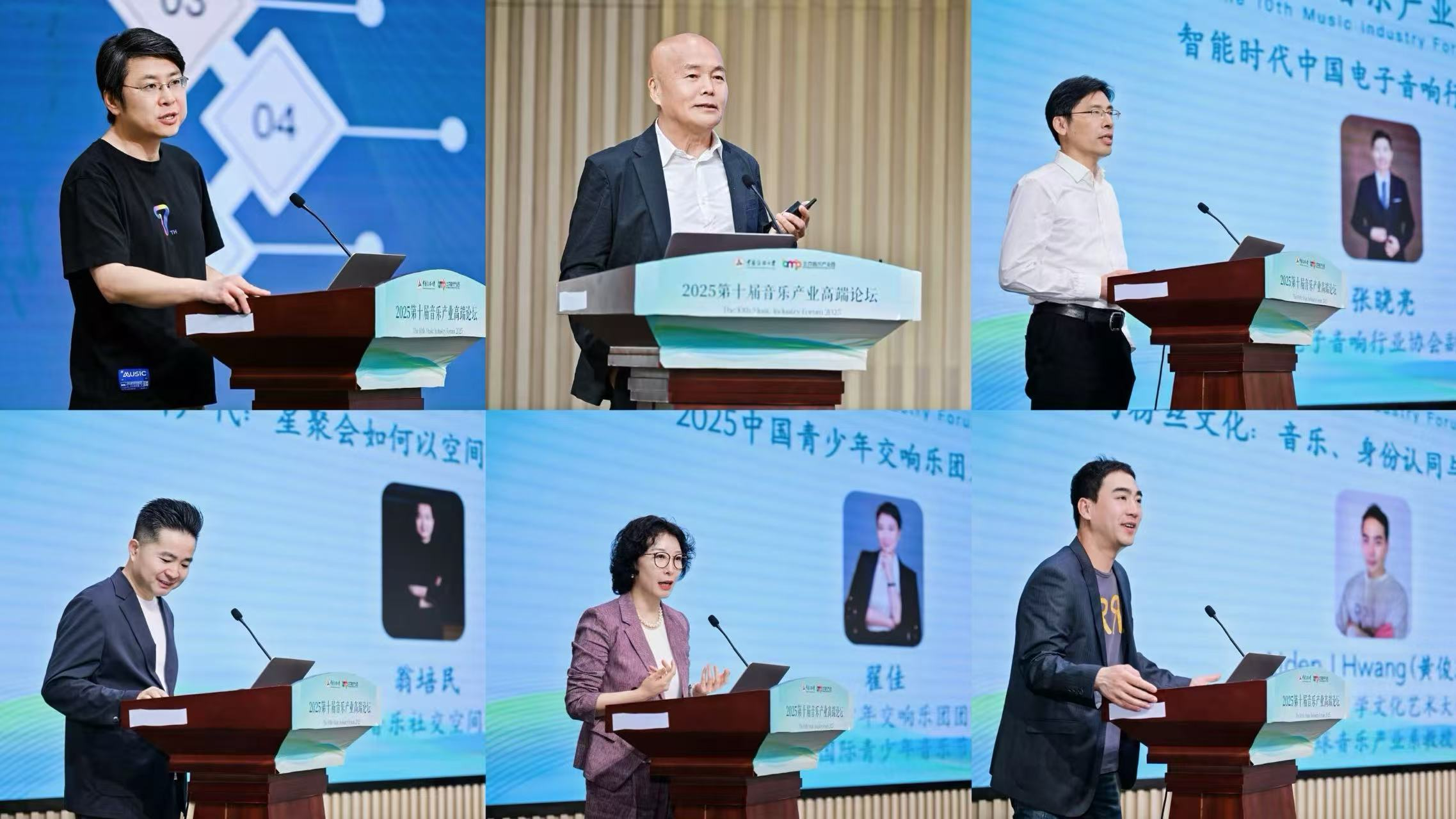 腾讯音乐研究院秘书长王优酉、韩国东国大学文化艺术大学院全球音乐产业系教授Aiden J Hwang (黄俊珉)、中国电子音响行业协会副秘书长张晓亮、星聚会音乐社交空间创始人翁培民、爱乐青少年交响乐团团长翟佳等嘉宾进行了主旨发言。