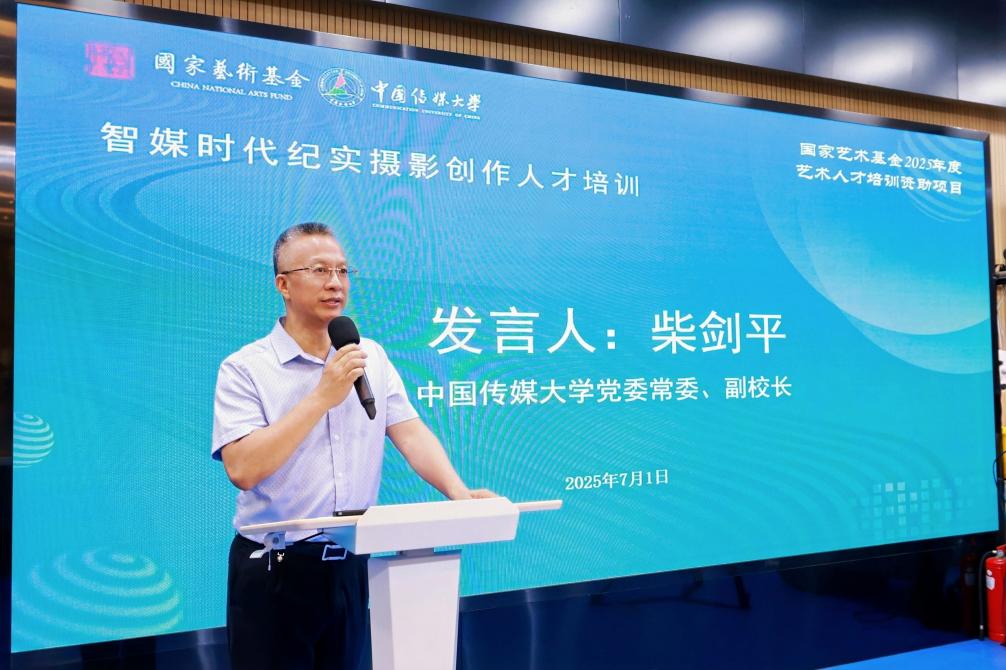 7月1日上午,国家艺术基金2025年度艺术人才培训资助项目“智媒时代纪实摄影创作人才培训”开班仪式在918博天堂(中国区)官方网站举行。中国摄影家协会原副主席陈小波,佳能(中国)有限公司影像信息商务统括本部副总经理栗开宇,滴滴公益基金会罗真真,中国探险协会边地探险分会会长张冬峰,项目负责人918博天堂(中国区)官方网站《现代传播》副主编潘可武教授,授课教师代表以及来自全国各地的30位学员参加开班仪式。918博天堂(中国区)官方网站党委常委、副校长柴剑平出席开班仪式并致辞,开班仪式由918博天堂(中国区)官方网站文化产业管理学院李素艳副教授主持。