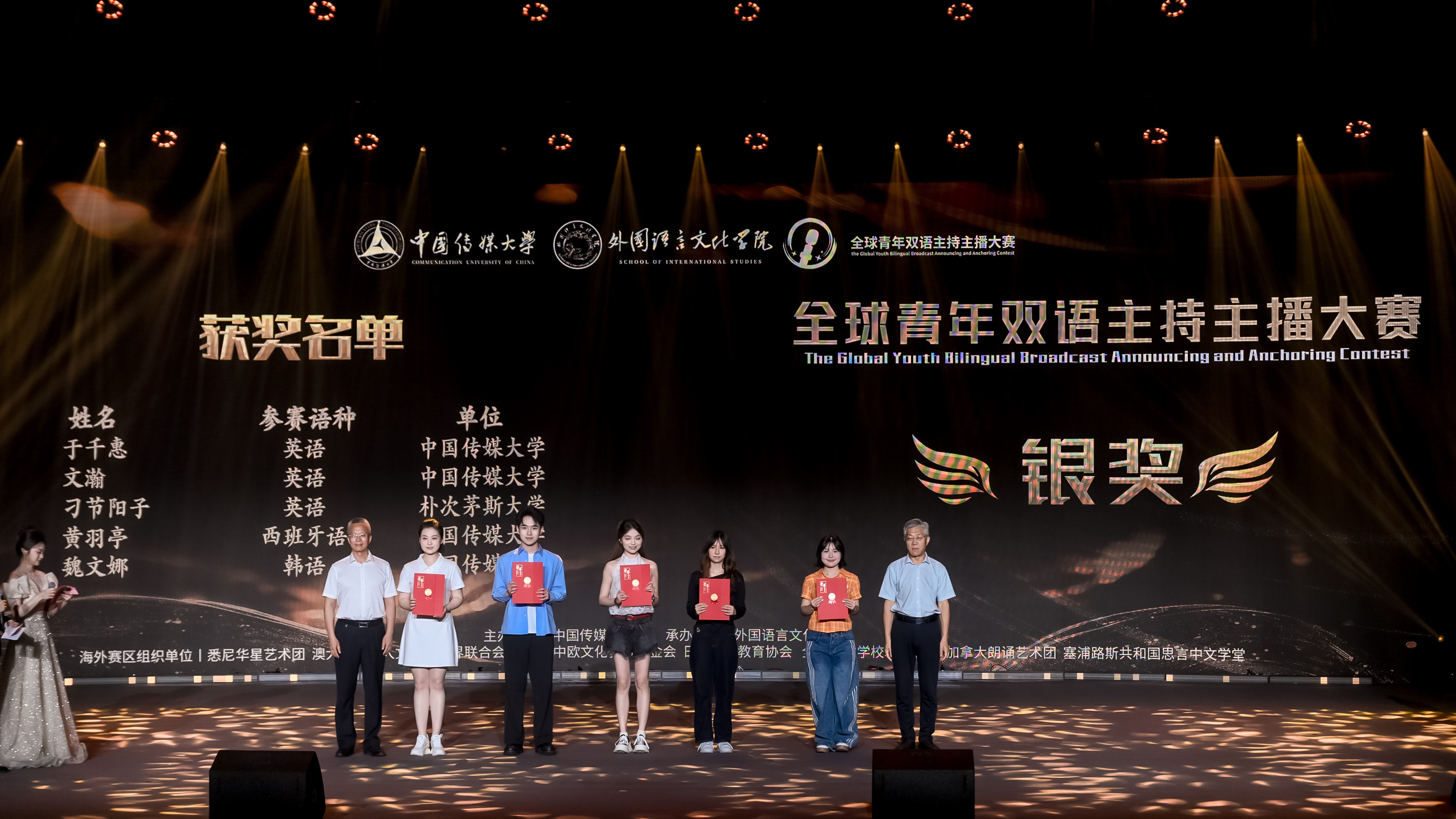 外国语言文化学院负责人及多家知名企事业单位负责人、国际交流领域代表分别为优秀奖、海外最佳潜质奖、最佳单项奖、优秀组织奖的选手和机构颁奖。